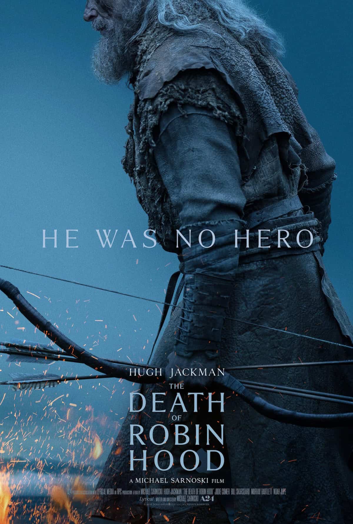 In addition to the trailer, A24 also released a new one-sheet poster for The Death of Robin Hood, which tells you outright with the tagline, “He was no hero.” Jackman’s look is teased as he looks older and weathered, but is adorned with the familiar fatigues of Robin of Locksley. So far the film doesn’t have a release date, with it tentatively set to debut later this year. I’m expecting a mid-summer release. Were it a fall release, we wouldn’t be getting a trailer so early.