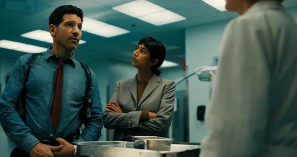 It becomes apparent right from the outset that His & Hers will not follow the more traditional formula we have seen in other series. While thriller and mystery stories like Gone Girl, The Girl on the Train, and The Woman in Cabin 10 have been structured around a major plot twist, His & Hers drops these constantly, with a handful coming within the first episode alone. The story follows Anna (Tessa Thompson), a news anchor who dropped off the radar after the death of her daughter, who happens to have direct knowledge regarding the murder of Rachel Hopkins (Jamie Tisdale). Detective Jack Harper (Jon Bernthal) is called in to investigate, along with his new partner, Priya (Sunita Mani), and they quickly clash with Anna. It is soon revealed that not only do Jack and Anna know each other intimately, but they also both have potential motives in the death of Rachel. Whether Jack or Anna committed the crime is teased through the series, but there is so much more going on in this show.